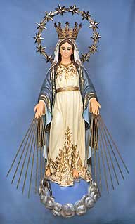 La advocación de la Virgen de la Medalla Milagrosa, viene ya de antiguo cuando en el año 1830, la Virgen se le apareció a una joven postulante. Fue esa una de las primeras apariciones de la Stma. Virgen en la que iniciaba una serie de apariciones muy importantes, Lourdes, Fátima, etc. que vienieron a promover con intesidad la devoción mariana en el mundo.
