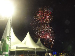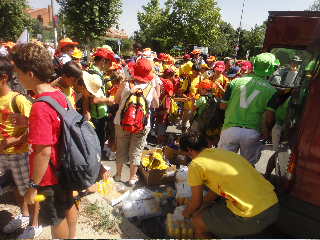 saltamontes, cigarras y hasta una culebra..debía estar el infierno hirviendo de rabia, que el calor que subía del suelo era muy fuerte..muy dura experiencia pero inolvidable; bebimos todo el agua del mundo, porque estábamos todos los países unidos..mucha sed de Dios..los bomberos nos mojaban y las monjitas las primeras en refrescarse..tan buenas..