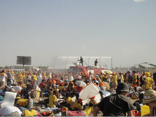 las carpas se derrumbaron..y no se pudieron repartir todas las formas porque se estropearon..y yo que no pude comulgar allí, en la misa de la tarde, el párroco nos anunció que comulgaríamos a Dios bendecido en la consagración de Cuatro Vientos..tantos regalos..